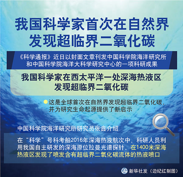 新華社青島5月11日電(記者張旭東)《科學(xué)通報(bào)》近日以封面文章刊發(fā)中國科學(xué)院海洋研究所和中國科學(xué)院海洋大科學(xué)研究中心的一項(xiàng)科研成果:我國科學(xué)家在西太平洋一處深海熱液區(qū)發(fā)現(xiàn)超臨界二氧化碳,這是全球首次在自然界發(fā)現(xiàn)超臨界二氧化碳,并為研究生命起源提供了新啟示。