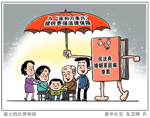 常言道:“家和萬(wàn)事興”。個(gè)人婚姻家庭關(guān)系的和睦與否,與全社會(huì)的和諧穩(wěn)定息息相關(guān)。從注重“家風(fēng)”建設(shè),到加大權(quán)益保護(hù)力度,即將提請(qǐng)全國(guó)人代會(huì)審議的民法典草案,是我國(guó)婚姻家庭立法進(jìn)程中的重要里程碑。