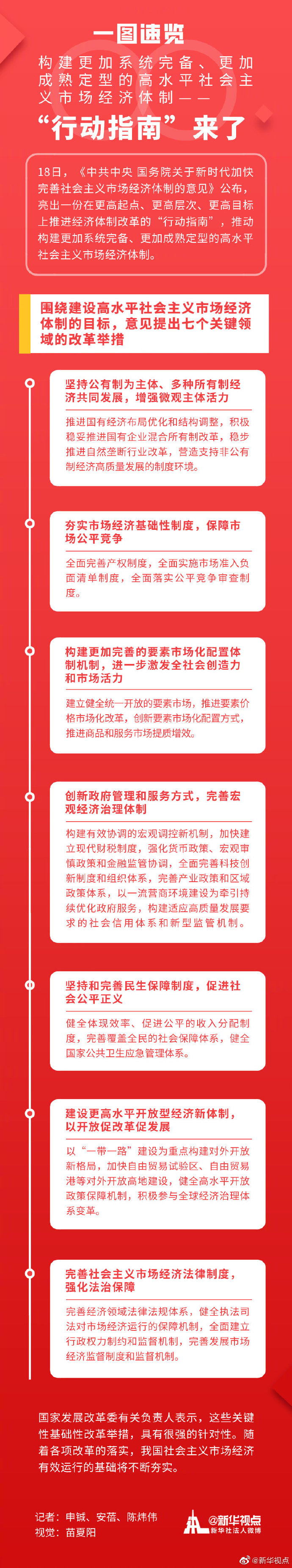 18日,《中共中央 國(guó)務(wù)院關(guān)于新時(shí)代加快完善社會(huì)主義市場(chǎng)經(jīng)濟(jì)體制的意見》公布,亮出一份在更高起點(diǎn)、更高層次、更高目標(biāo)上推進(jìn)經(jīng)濟(jì)體制改革的“行動(dòng)指南”。