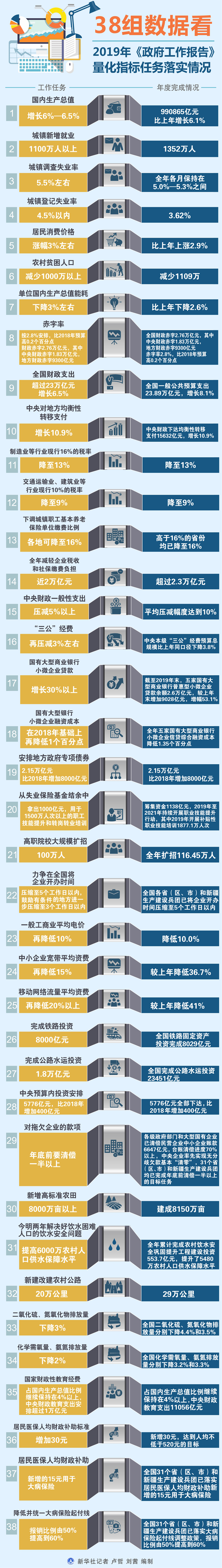 新華社北京5月19日電(記者高亢)全國兩會召開在即,國務院19日對外公布2019年《政府工作報告》量化指標任務落實情況表,38項指標任務均已完成。