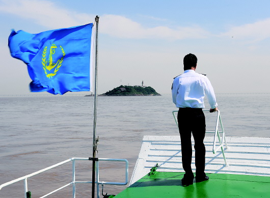 5月20日,葉家第四代燈塔工葉靜虎站在補(bǔ)給船上駛向兒子葉超群工作的七里嶼燈塔。