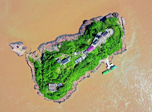 登上七里嶼島山頂,一根十余米高的國(guó)旗桿遙遙在目,一抹鮮艷的紅色在海天交接的碧藍(lán)晴空下分外耀眼。