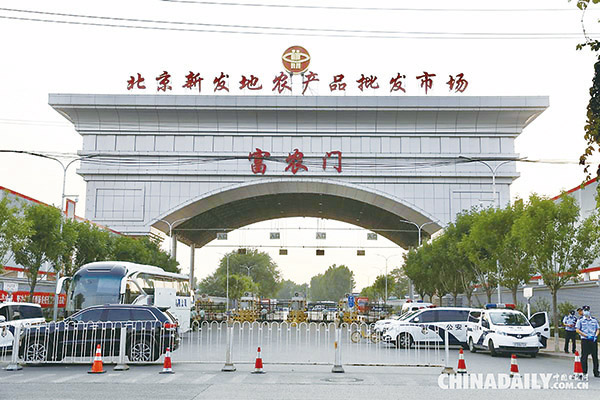 6月12日0時(shí)至24時(shí),北京市豐臺(tái)區(qū)共報(bào)告5例新冠肺炎確診病例。病例行動(dòng)軌跡涉及新發(fā)地批發(fā)市場(chǎng)部分商戶,目前新發(fā)地批發(fā)市場(chǎng)及周邊小區(qū)已采取封閉管理措施。上圖為已采取封閉管理措施的新發(fā)地批發(fā)市場(chǎng)外景。武曉慧 攝