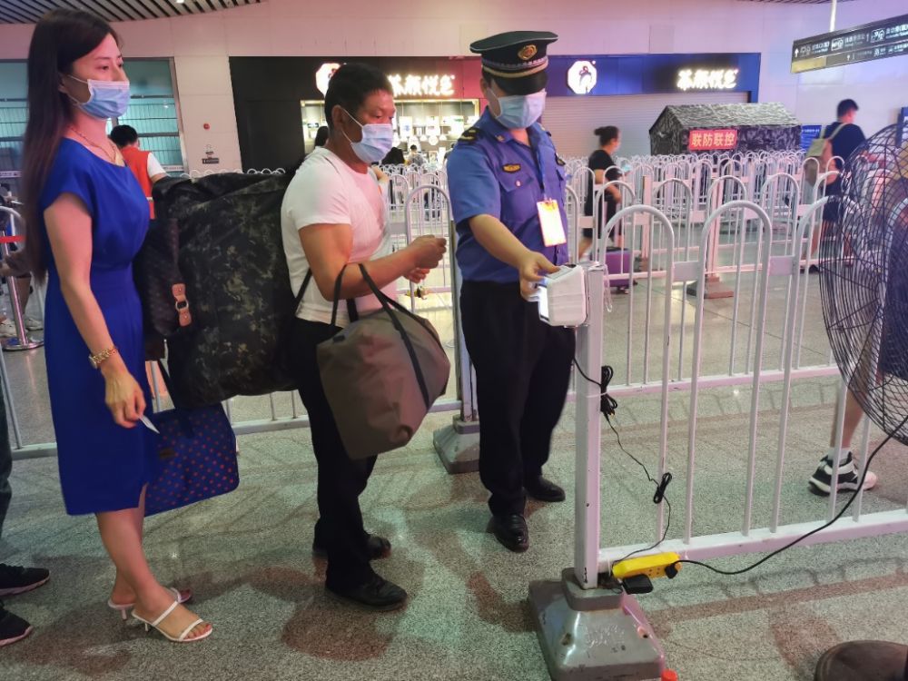 圖為6月23日,旅客在長沙高鐵南站通過“健康碼”智能核驗儀刷身份證核驗“健康碼”入站