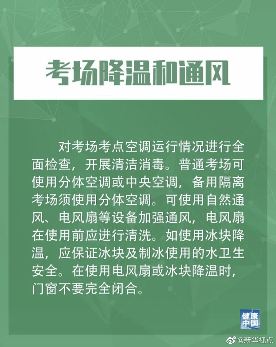 措施提到,發(fā)生過疫情的學(xué)校,不能作為考點(diǎn)。低風(fēng)險(xiǎn)地區(qū)在每天考試結(jié)束后,對考場做一次預(yù)防性消毒;非低風(fēng)險(xiǎn)地區(qū)要在每科考試結(jié)束后做一次預(yù)防性消毒。