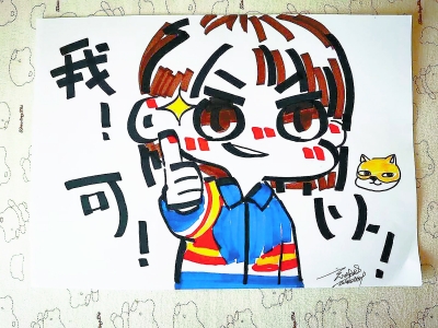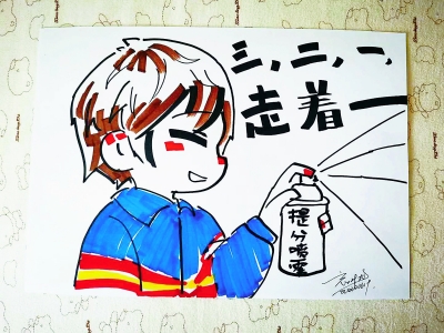 三年前,剛入高一,張亦萱所在的班級與當時的高三年級安排在了同一樓層?!半m然沒有太多交集,但是每天進進出出,高三學長們的辛苦、努力和疲憊,我們都看在眼里。”張亦萱特別想做點兒什么。高考前,學校在布置考場時,張亦萱找到班主任,問能不能給高三每個班畫一幅畫,貼在門上當加油海報。老師同意了。張亦萱不僅畫了漫畫,還邀請班上字跡漂亮的同學寫上寄語。