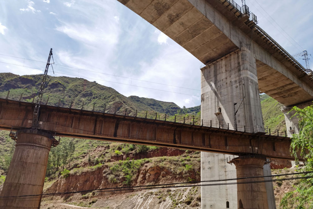 這是采用“轉(zhuǎn)體施工法”建設的大樹村龍川江三線大橋(上)一景,該橋單體轉(zhuǎn)體重量7350噸,總重量14700噸(6月23日攝)。新華社記者 王長山 攝