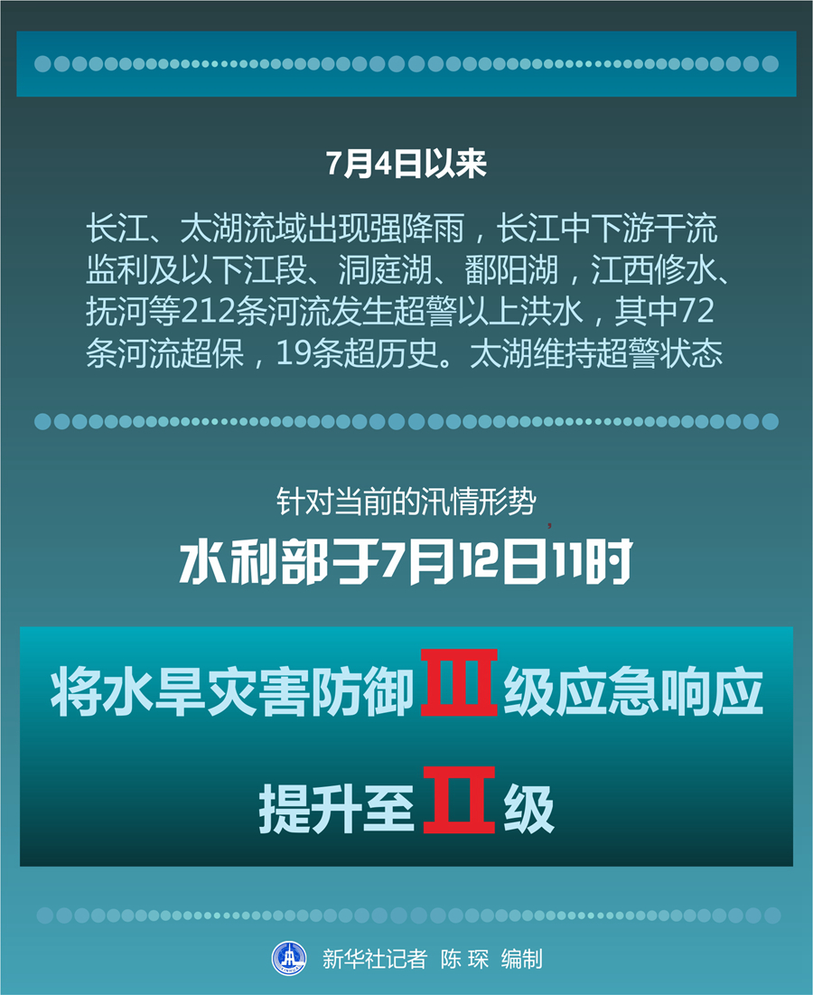 新華社北京7月12日電(記者胡璐)7月4日以來(lái),長(zhǎng)江、太湖流域出現(xiàn)強(qiáng)降雨,長(zhǎng)江中下游干流監(jiān)利及以下江段、洞庭湖、鄱陽(yáng)湖,江西修水、撫河等212條河流發(fā)生超警以上洪水,其中72條河流超保,19條超歷史。太湖維持超警狀態(tài)。針對(duì)當(dāng)前的汛情形勢(shì),水利部于12日11時(shí)將水旱災(zāi)害防御Ⅲ級(jí)應(yīng)急響應(yīng)提升至Ⅱ級(jí)。