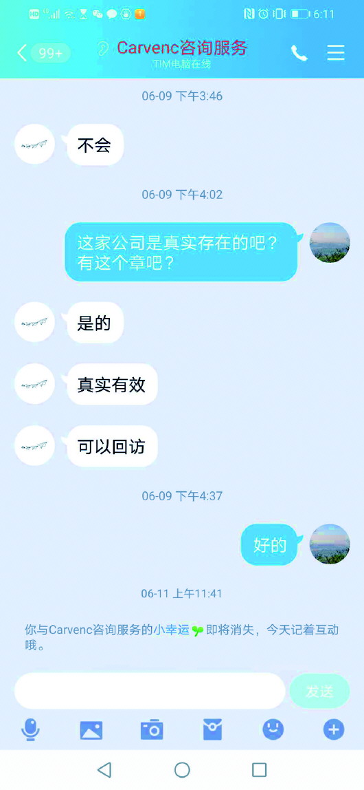 記者同受訪(fǎng)者的聊天記錄截圖。