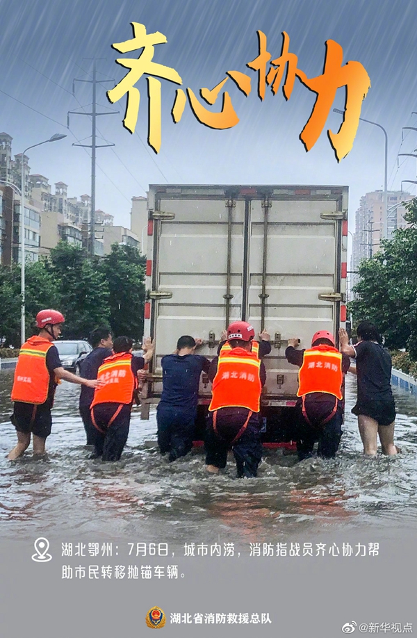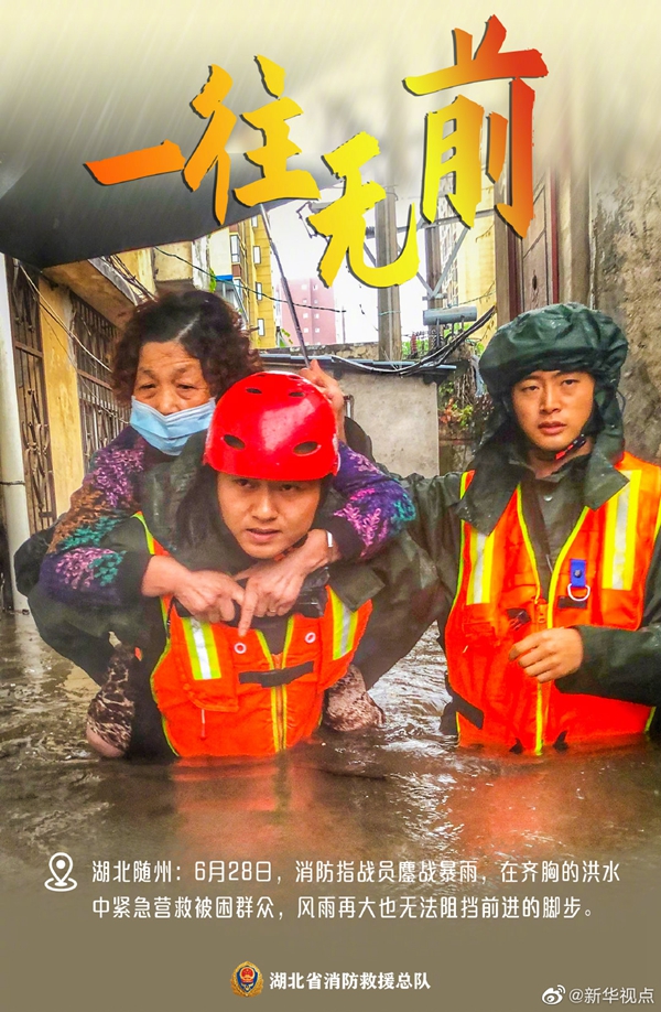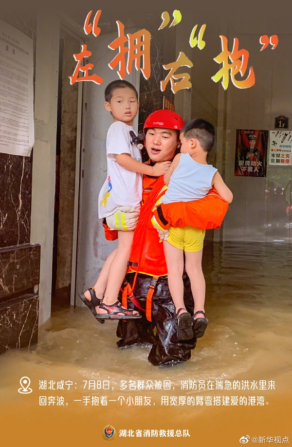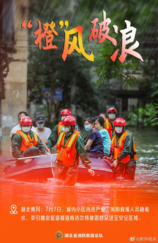 湖北近期遭遇持續(xù)強降雨天氣,部分地區(qū)出現(xiàn)洪澇災(zāi)害。洪水襲來,在救援現(xiàn)場奔波忙碌的消防救援人員,始終沖在一線,“橙”風(fēng)破浪,守護著人民群眾的生命和財產(chǎn)安全。這抹“橙”,成為災(zāi)區(qū)人民心中最溫暖的底色。向“逆行者”致敬?。ㄓ浾吡航◤姡?/p>
