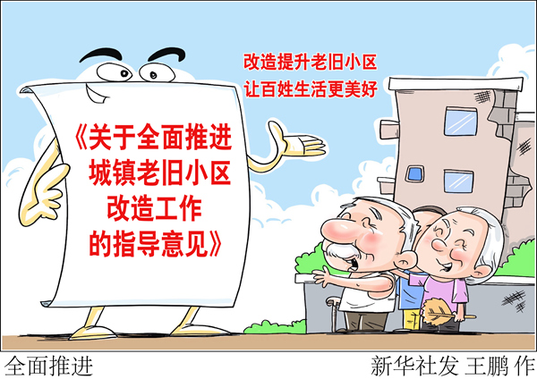 國務(wù)院辦公廳日前印發(fā)《關(guān)于全面推進城鎮(zhèn)老舊小區(qū)改造工作的指導(dǎo)意見》,強調(diào)要大力改造提升城鎮(zhèn)老舊小區(qū),讓人民群眾生活更方便、更舒心、更美好。這是國務(wù)院首次就城鎮(zhèn)老舊小區(qū)改造工作出臺的專門文件。