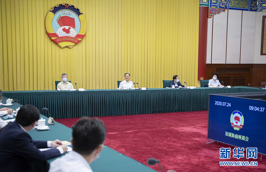 7月24日,十三屆全國(guó)政協(xié)第38次雙周協(xié)商座談會(huì)在北京召開。中共中央政治局常委、全國(guó)政協(xié)主席汪洋主持會(huì)議。 新華社記者 李濤 攝