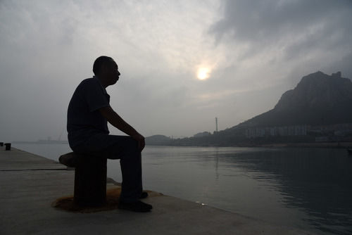 7月16日,“泰叔”錢均堂坐在院夼村“擁軍碼頭”。新華社記者 王凱 攝