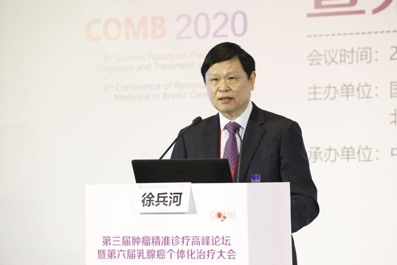 國家腫瘤質控中心乳腺癌專家委員會主任委員、中國醫(yī)學科學院腫瘤醫(yī)院徐兵河教授在第六屆乳腺癌個體化治療大會上發(fā)言。圖片由受訪者提供