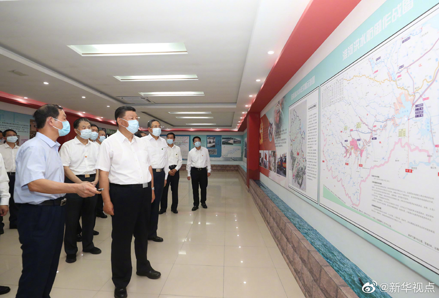 習(xí)近平總書記18日赴安徽考察調(diào)研。當(dāng)天下午,他先后來到阜陽市阜南縣王家壩閘、紅亮箱包有限公司、蒙洼蓄洪區(qū)曹集鎮(zhèn)利民村西田坡莊臺,察看淮河水情,走進田間地頭,了解當(dāng)?shù)胤姥淳葹?zāi)和災(zāi)后恢復(fù)生產(chǎn)等情況,看望慰問受災(zāi)群眾。(文字記者:張曉松 攝影記者:鞠鵬 王曄)