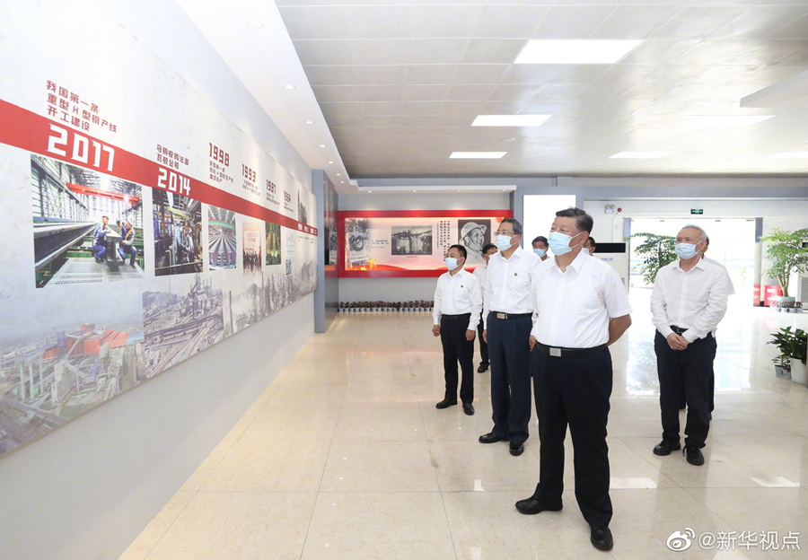 19日上午,正在安徽考察調(diào)研的習近平總書記走進中國寶武馬鋼集團優(yōu)質(zhì)合金棒材車間,冒著高溫察看生產(chǎn)運行情況,并同勞動模范、工人代表親切交流。習近平指出,在抗擊新冠肺炎疫情過程中,馬鋼較早復工復產(chǎn),實現(xiàn)了產(chǎn)量、營銷收入同比雙升,展現(xiàn)了國有經(jīng)濟的強大韌性。他勉勵馬鋼在長三角一體化發(fā)展中把握機遇、順勢而上,特別是要把自身改革發(fā)展同長三角一體化發(fā)展有機結(jié)合銜接,力爭在長三角一體化發(fā)展中不斷發(fā)展壯大自己,也為長三角一體化發(fā)展作出自己的貢獻。(文字記者:張曉松 攝影記者:鞠鵬 王曄 燕雁)