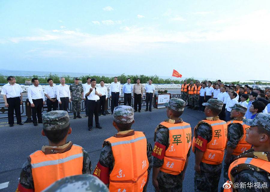 19日下午,正在安徽考察調(diào)研的習近平總書記來到合肥市肥東縣十八聯(lián)圩生態(tài)濕地蓄洪區(qū)巢湖大堤羅家疃段,察看巢湖水勢水情。他強調(diào),洪水退后,要防止蓄洪區(qū)內(nèi)出現(xiàn)水退人進的現(xiàn)象。我們要實現(xiàn)人與自然和諧相處,就不能同自然爭奪發(fā)展空間。八百里巢湖要用好,更要保護好、治理好,使之成為合肥這個城市最好的名片。(文字記者:張曉松 攝影記者:鞠鵬 王曄 燕雁)