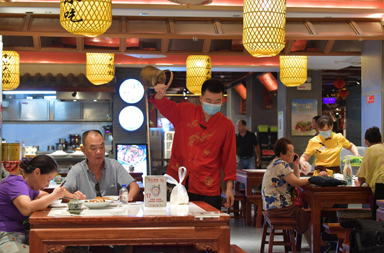 近日,寧夏餐飲飯店協(xié)會(huì)發(fā)出“厲行節(jié)約、杜絕浪費(fèi)”倡議書。不少顧客主動(dòng)將餐后剩余飯菜進(jìn)行打包,一同杜絕浪費(fèi),踐行“光盤”行動(dòng)。新華社記者 馮開華/攝