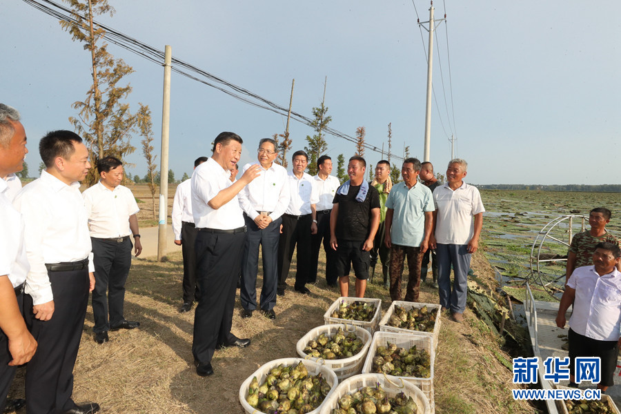 8月18日至21日,中共中央總書記、國家主席、中央軍委主席習(xí)近平在安徽省考察。這是18日下午,習(xí)近平在阜陽市阜南縣蒙洼蓄洪區(qū),同正在勞作的鄉(xiāng)親們親切交流。 新華社記者 鞠鵬 攝