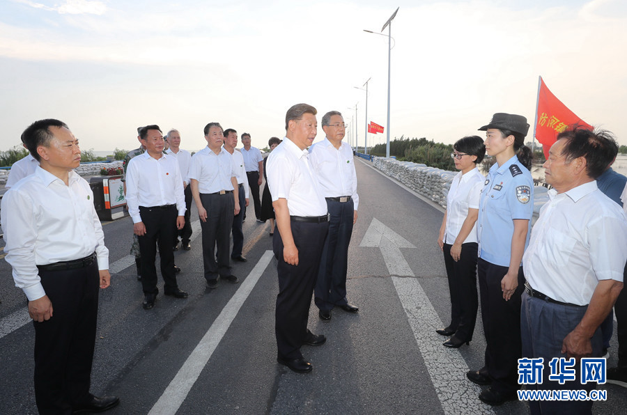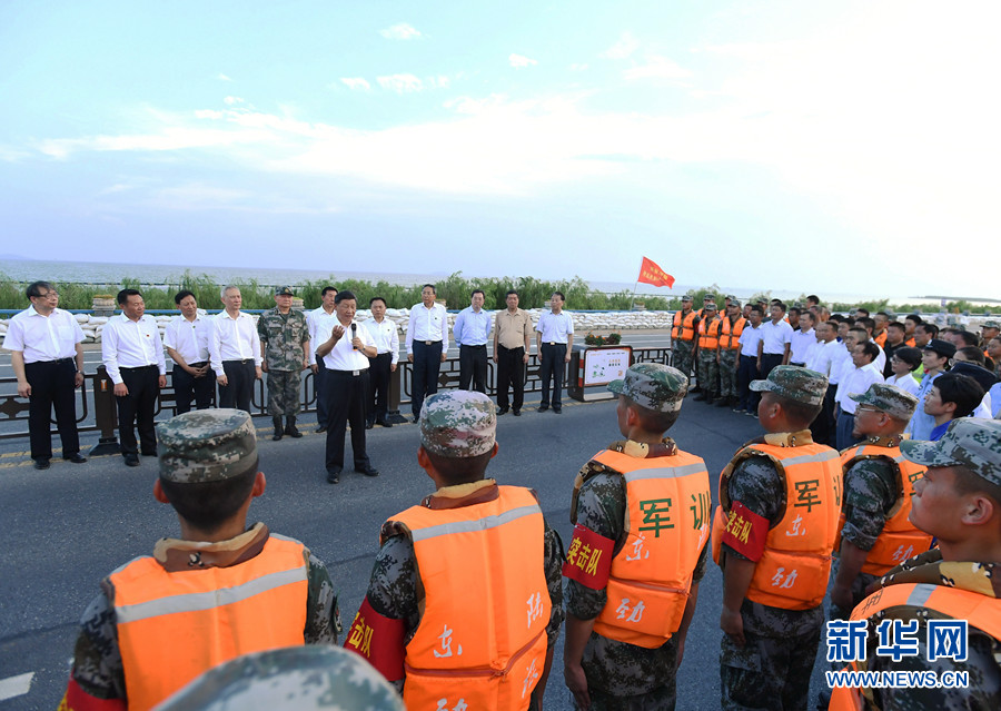 19日下午,習(xí)近平來到合肥市肥東縣十八聯(lián)圩生態(tài)濕地蓄洪區(qū)巢湖大堤羅家疃段考察。今年入汛以來,巢湖水位多次突破歷史極值,合肥市主動啟用十八聯(lián)圩及周邊圩區(qū)蓄洪。習(xí)近平仔細(xì)察看巢湖水勢水情,聽取環(huán)巢湖主要圩口分洪及周邊濕地蓄洪、巢湖綜合治理情況匯報,了解防汛物資和大堤加固情況。他強調(diào),要堅持濕地蓄洪區(qū)的定位和規(guī)劃,盡快恢復(fù)生態(tài)濕地蓄洪區(qū)的行蓄洪功能和生態(tài)保護功能。他指出,當(dāng)前,南方有關(guān)地方要繼續(xù)抓好防汛救災(zāi)工作,同時要嚴(yán)防次生災(zāi)害。北方有關(guān)地方要對可能發(fā)生的汛情加強警戒和防范,全面落實防汛救災(zāi)各項工作,確保安全度汛,確保人民群眾生命財產(chǎn)安全。