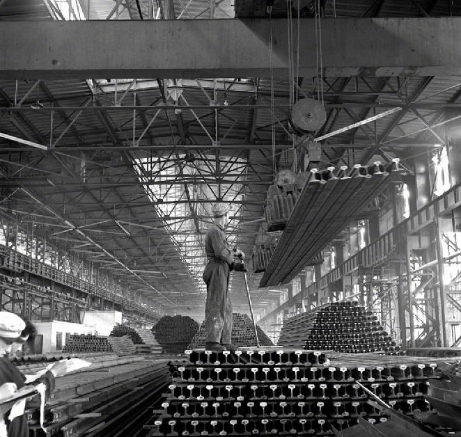 ?“一五”期間,鞍鋼興建的第一座大型軋鋼廠生產(chǎn)能力已迅速超過(guò)設(shè)計(jì)標(biāo)準(zhǔn)。這是這個(gè)廠生產(chǎn)的大批鋼軌(攝于1957年4月)。 ?