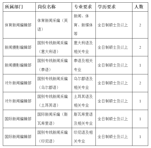 新華社面向社會公開招聘留學人員,現(xiàn)就相關事項公告如下: