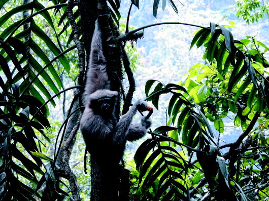 由于生存環(huán)境的退化和偷獵的威脅,中國野外確認(rèn)存在的長臂猿只剩下4種,總數(shù)不過1400只;另有兩種被認(rèn)為已經(jīng)功能性滅絕。祝常悅的主要研究保護(hù)對(duì)象,生活在云南高黎貢山國家級(jí)自然保護(hù)區(qū)原始森林里的天行長臂猿,野外數(shù)量樂觀估計(jì)已不足150只。按照保護(hù)生物學(xué)的定義,長臂猿被視為旗艦物種,是森林健康的標(biāo)志,它們的減少甚至消失,預(yù)示著森林生態(tài)狀況的嚴(yán)重惡化。但大多數(shù)人對(duì)它們的印象還停留于,“為什么要保護(hù)猴子?”