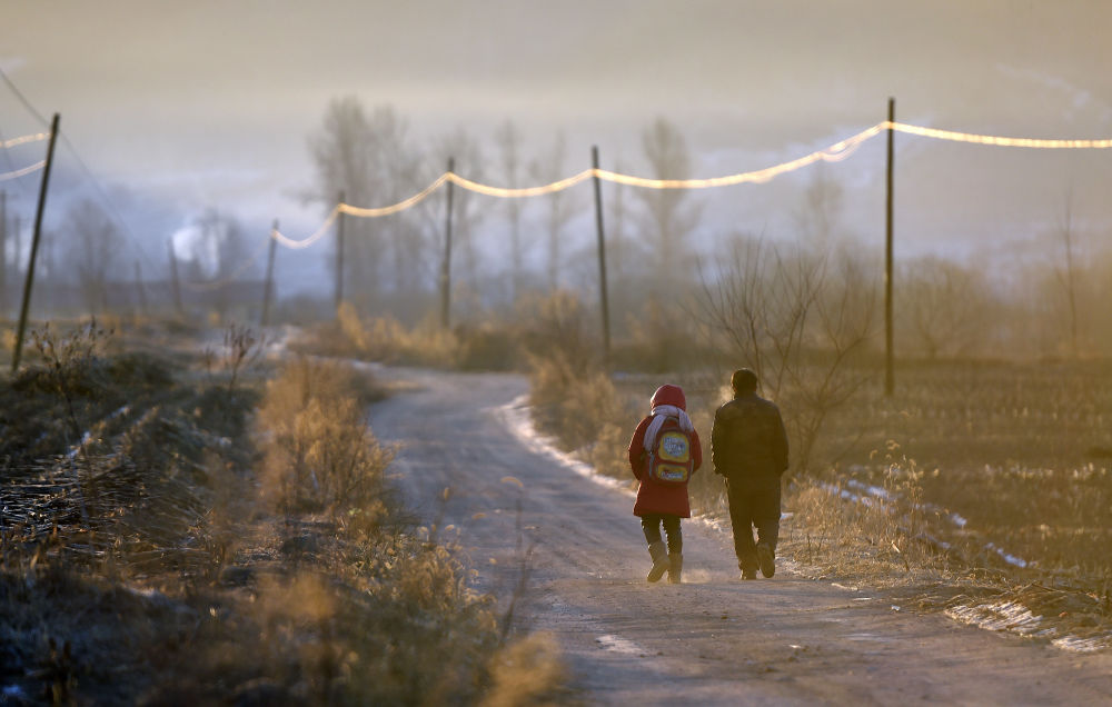 ↑迎著朝陽上學