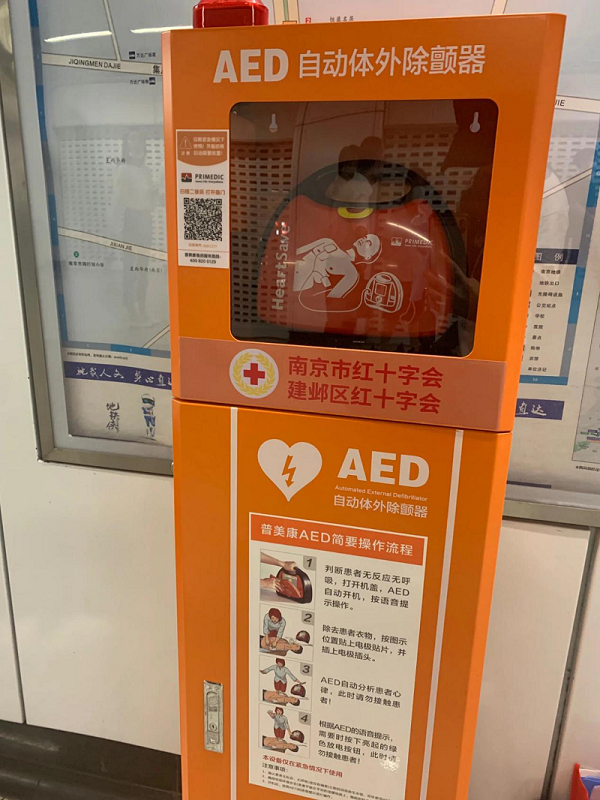 記者了解到,江蘇從2015年開(kāi)始陸續(xù)公共場(chǎng)所設(shè)置自動(dòng)體外除顫器。2019年6月,南京市公共場(chǎng)所設(shè)置AED公益項(xiàng)目正式啟動(dòng),首批100臺(tái)AED在警務(wù)站、地鐵站點(diǎn)等處配置到位。預(yù)計(jì)到今年年底,南京AED安裝總數(shù)將超過(guò)2000臺(tái),目前,南京所有地鐵站點(diǎn)AED安裝已經(jīng)率先在長(zhǎng)三角地區(qū)實(shí)現(xiàn)了全覆蓋。