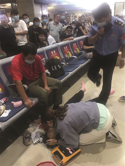 7月31日,江蘇徐州火車(chē)站一名女乘客心梗暈厥,當(dāng)時(shí)在車(chē)站等車(chē)的“藍(lán)衣女孩”,連云港市第二人民醫(yī)院臨床醫(yī)學(xué)實(shí)習(xí)生孫嘉寧聞?dòng)嵙⒖糖皝?lái)跪地施救,讓患者逐漸恢復(fù)了呼吸和心跳。