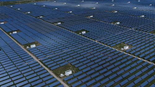 青海省海南藏族自治州共和縣塔拉灘光伏電站(8月17日攝,無人機照片)。新華社記者 張龍 攝