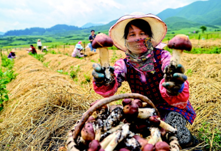 廈門(mén)援建和政縣夏潤(rùn)赤松茸種植基地。赤松茸豐收農(nóng)戶樂(lè)開(kāi)懷。(圖片均為黃嶸攝)