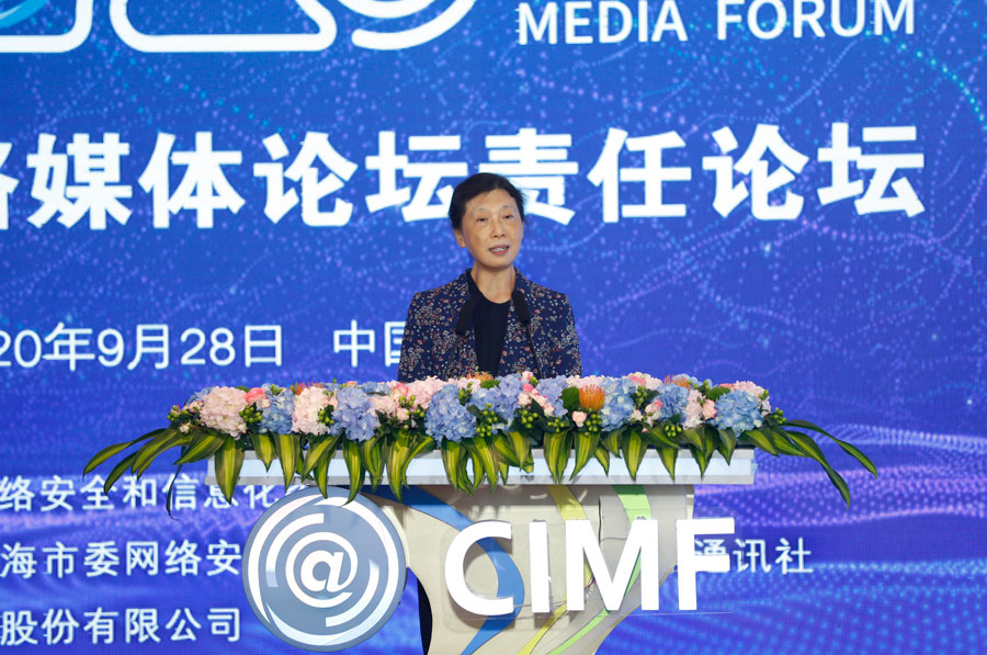 中國傳媒大學(xué)新聞傳播學(xué)部學(xué)部長高曉虹在2020中國網(wǎng)絡(luò)媒體論壇責(zé)任論壇上做主題演講。新華網(wǎng) 陳杰 攝