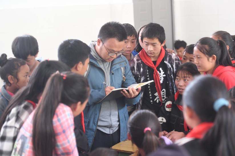 四川日報侯沖在美姑縣典補鄉(xiāng)中心小學(xué)采訪當(dāng)?shù)乜剌z保學(xué)
