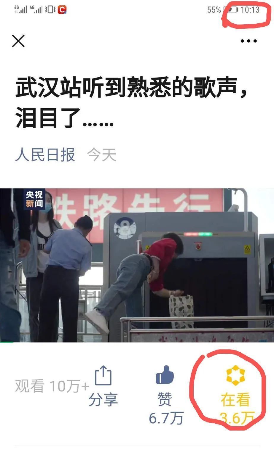 首先是央視的重磅炸彈,簡直一個接一個:早起就被一條《當武漢火車站響起熟悉的歌聲……》的快閃新聞?wù)鸬盟查g淚奔。單是那前奏一起,看到如今擠擠挨挨的武漢火車站現(xiàn)場、交織著那曾經(jīng)至暗時刻的回憶,心疼、感動、自豪……種種情愫油然而生!當張定宇出現(xiàn)在鏡頭里,畫面定格在“這是英雄的祖國”,那一刻,心真的是知道了什么叫“DUANG”一下!快閃之后,現(xiàn)場群眾最多說到的“不容易”和“安全感”,真是大家的心聲。也正是因為如此,人民日報微信公號16:36轉(zhuǎn)發(fā)這條視頻后,晚上10點剛過,在看量就已經(jīng)達到3.6萬——人心所向,可見一斑。