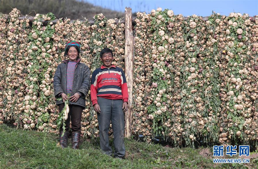 昭覺縣火普村村民在晾曬蘿卜。攝于2020年5月。新華社記者 江宏景 攝