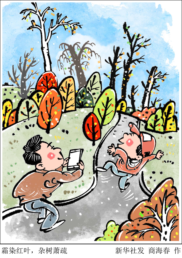 羅澍偉說(shuō),從“寒露”至“霜降”,北方霜染紅葉,南方蟬噤荷殘,秋色斑斕,美不勝收;廣大農(nóng)村則進(jìn)入秋熟作物收割、越冬作物播種的大忙季節(jié),石榴、山楂、柿子等果子成熟,掛滿枝頭,累累碩果惹人醉。