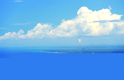 1分鐘后,長(zhǎng)五遙四消失在發(fā)射基地人們的肉眼視線里,只留下雷鳴般的轟響依然回蕩在海天之上。