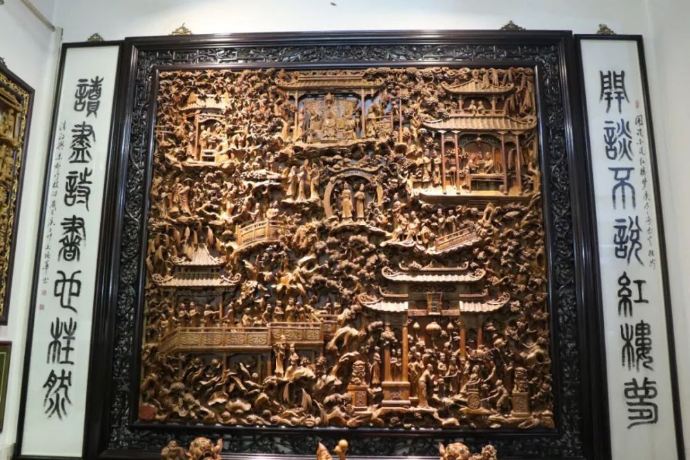 木雕大師金子松創(chuàng)作的素雕作品——《紅樓夢(mèng)·大觀園》 。新華社記者 孟宜霏 攝