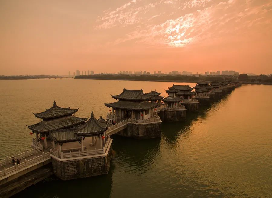 余暉中的廣濟(jì)橋。新華網(wǎng)發(fā) 繆華 攝
