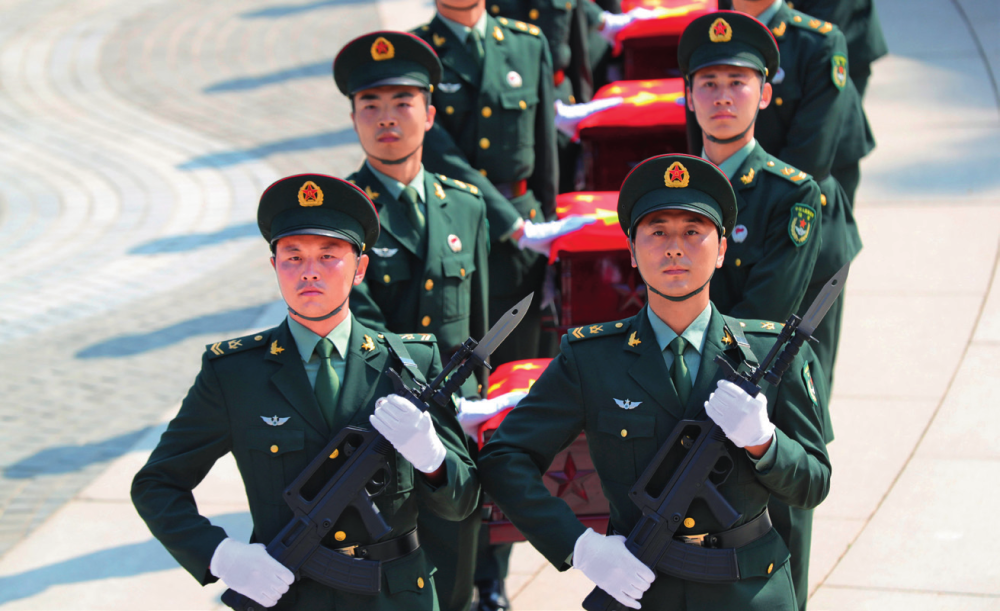 9月28日,禮兵護送志愿軍烈士遺骸棺槨進入沈陽抗美援朝烈士陵園安葬地宮 楊青攝/本刊