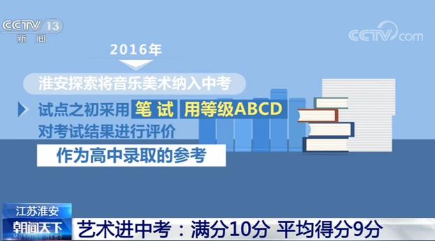 2016年,淮安探索將音樂(lè)美術(shù)納入中考,試點(diǎn)之初采用筆試、用等級(jí)ABCD對(duì)考試結(jié)果進(jìn)行評(píng)價(jià),作為高中錄取的參考。2018年,改革進(jìn)一步深化,音樂(lè)、美術(shù)各以滿(mǎn)分5分分值計(jì)入中考總分,共十分,考核內(nèi)容主要是音樂(lè)、美術(shù)基本知識(shí)和基本素養(yǎng),考試方式由筆試調(diào)整為人機(jī)對(duì)話(huà)考核,不再局限在基本知識(shí),而是注重考察學(xué)生對(duì)音樂(lè)和美術(shù)作品等欣賞辨析能力。