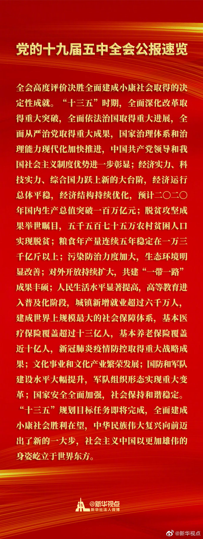 黨的十九屆五中全會公報(bào)速覽丨全會高度評價(jià)決勝全面建成小康社會取得的決定性成就-新華網(wǎng)