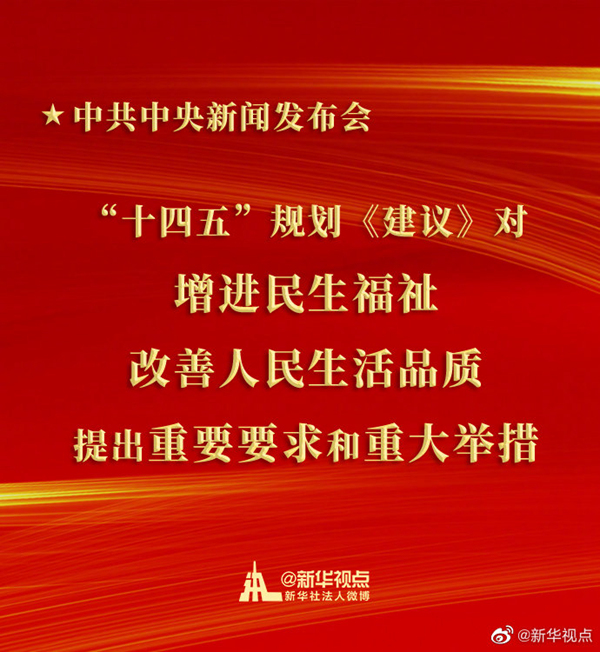 國(guó)家發(fā)展和改革委員會(huì)黨組成員、副主任,國(guó)家統(tǒng)計(jì)局黨組書(shū)記、局長(zhǎng)寧吉喆說(shuō),“十四五”規(guī)劃《建議》順應(yīng)億萬(wàn)群眾的期盼,對(duì)增進(jìn)民生福祉,改善人民生活品質(zhì)提出了一些重要要求和重大舉措。在就業(yè)方面,將強(qiáng)化就業(yè)優(yōu)先政策,擴(kuò)大就業(yè)容量,完善重點(diǎn)群體就業(yè)支持體系,實(shí)現(xiàn)更充分更高質(zhì)量的就業(yè);在收入方面,將提高人民收入水平,多渠道增加城鄉(xiāng)居民收入,保持居民收入與經(jīng)濟(jì)增長(zhǎng)基本同步;在教育方面,將建設(shè)高質(zhì)量教育體系,推動(dòng)義務(wù)教育均衡發(fā)展和城鄉(xiāng)一體化,促進(jìn)全民受教育程度不斷提升;在文化體育方面,將廣泛開(kāi)展群眾性文化活動(dòng),廣泛開(kāi)展全民健身運(yùn)動(dòng);在健康方面,將全面推進(jìn)健康中國(guó)建設(shè),加快優(yōu)質(zhì)醫(yī)療資源擴(kuò)容和區(qū)域均衡布局,使衛(wèi)生健康體系更加完善;在養(yǎng)老方面,將實(shí)施積極應(yīng)對(duì)人口老齡化國(guó)家戰(zhàn)略,促進(jìn)人口長(zhǎng)期均衡發(fā)展,健全基本養(yǎng)老服務(wù)體系;在社保方面,將健全覆蓋全民、統(tǒng)籌城鄉(xiāng)、公平統(tǒng)一、可持續(xù)的多層次社會(huì)保障體系。