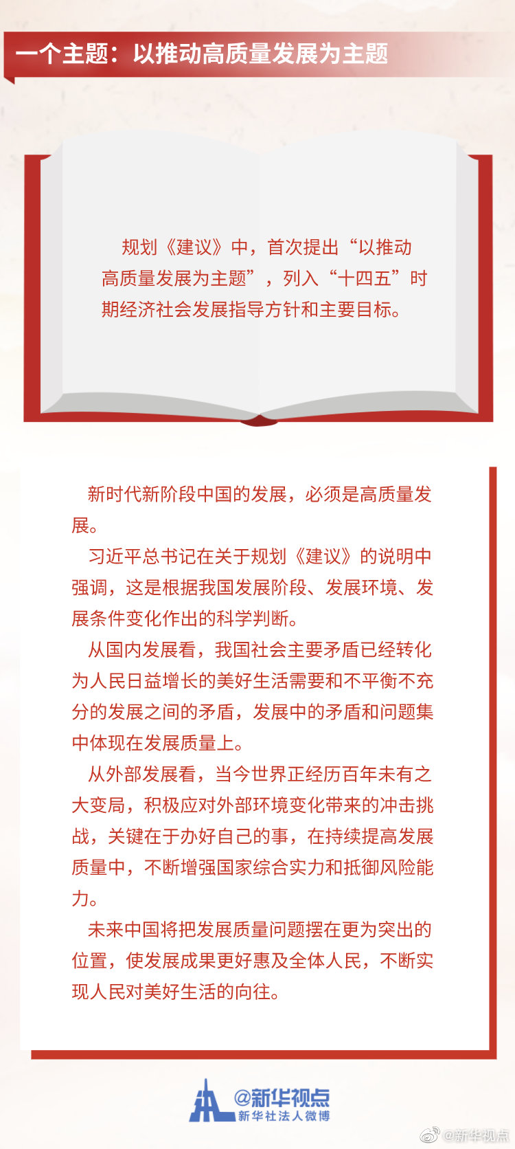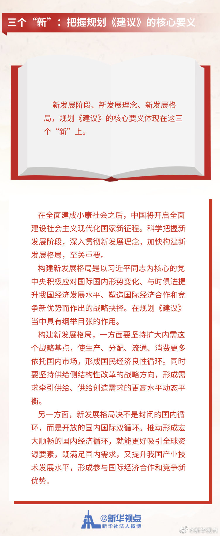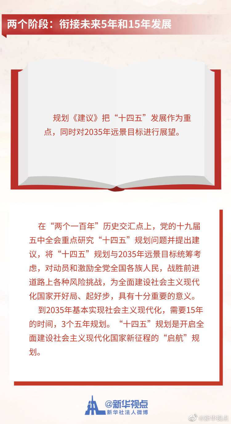 《中共中央關(guān)于制定國民經(jīng)濟和社會發(fā)展第十四個五年規(guī)劃和二〇三五年遠(yuǎn)景目標(biāo)的建議》3日公布。這份長約2萬字的文件,為未來5年及15年的中國發(fā)展勾勒藍(lán)圖。記者梳理出規(guī)劃《建議》中的“一二三四五”,為觀察中國發(fā)展走向提供一個獨特視角。