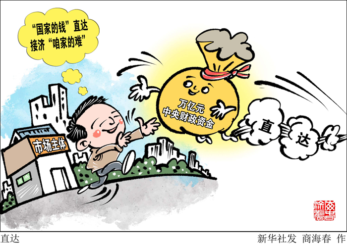 中央財政不再是一個“高大上”詞匯:一百來天,萬億元中央財政資金直達市場主體,溫暖了億萬個體,支撐了經(jīng)濟實體,如同饑者口中食、寒者身上衣,“國家的錢”直達接濟“咱家的難”,成為財政人民性的最好體現(xiàn)。