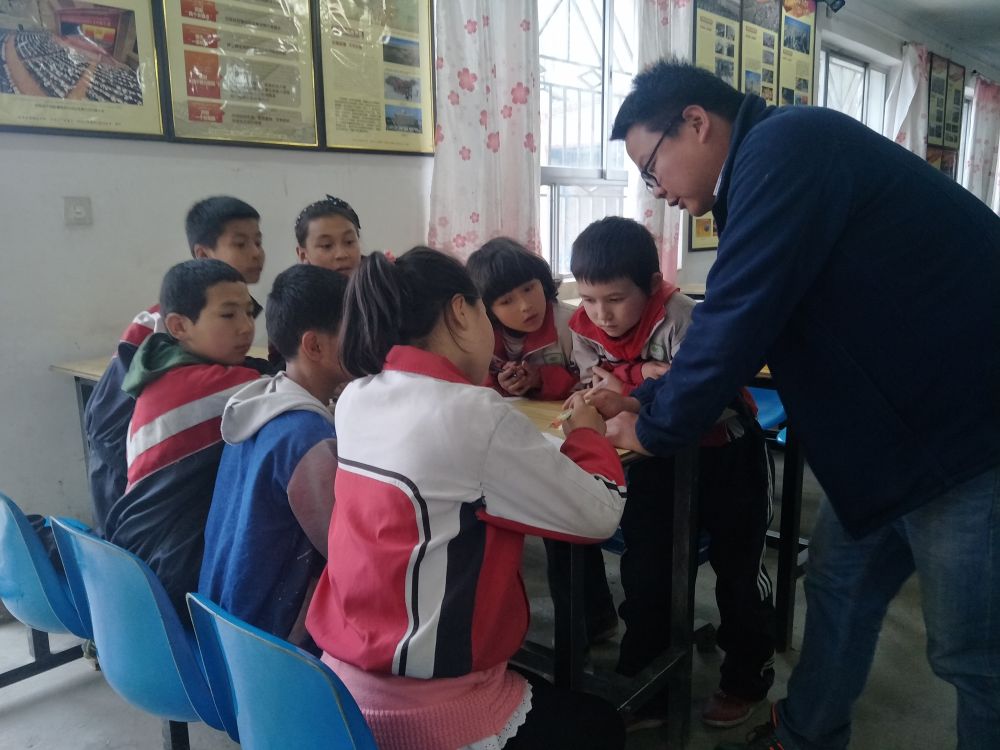 2017年4月,呼延瑋輔導(dǎo)蘭干村的孩子們學(xué)習(xí)語(yǔ)文。(采訪對(duì)象供圖)