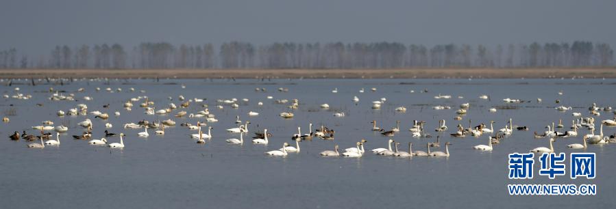 越冬候鳥棲息在鄱陽(yáng)湖濕地水域(11月5日攝)。新華社記者 彭昭之 攝