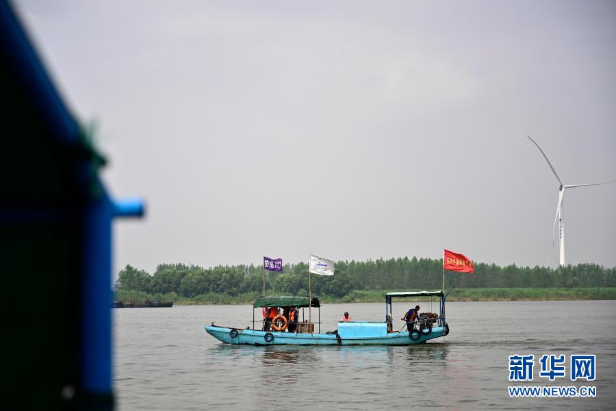 在江西省湖口縣,江豚協(xié)助巡護(hù)隊(duì)的隊(duì)員在鄱陽(yáng)湖水域巡查(6月8日攝)。新華社記者 彭昭之 攝