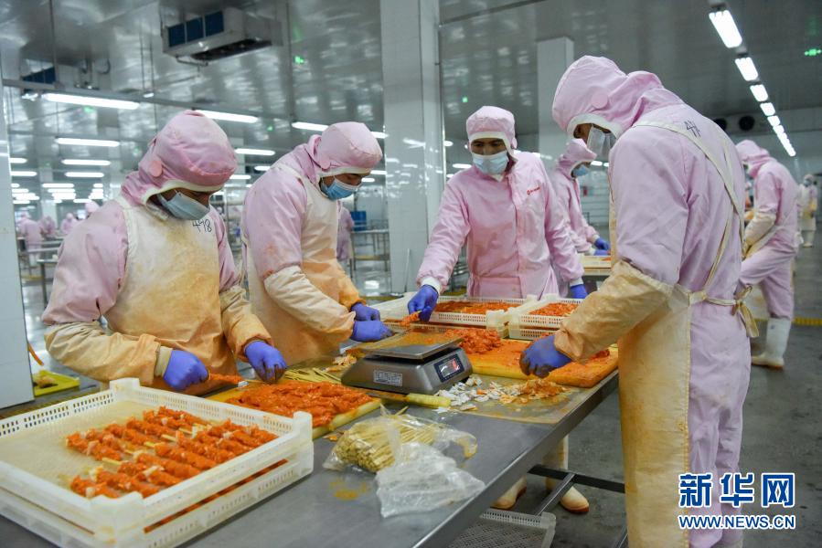 來自扎瓦鎮(zhèn)的村民麥麥提阿卜杜拉·艾山今年5月來到公司上班,現(xiàn)在是調(diào)理制品車間負(fù)責(zé)人,便民餐車不少貨品都出自他所在的車間。之前做小生意的他收入不穩(wěn)定,如今月工資穩(wěn)定還能準(zhǔn)時下班?!半x家近了,方便照顧年邁的父母?!彼f
